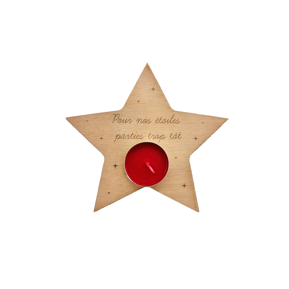 Offrez ou offrez-vous un moment de douceur avec ce bougeoir en forme d’étoile, pensé pour rendre hommage aux êtres chers qui ne sont plus parmi nous.