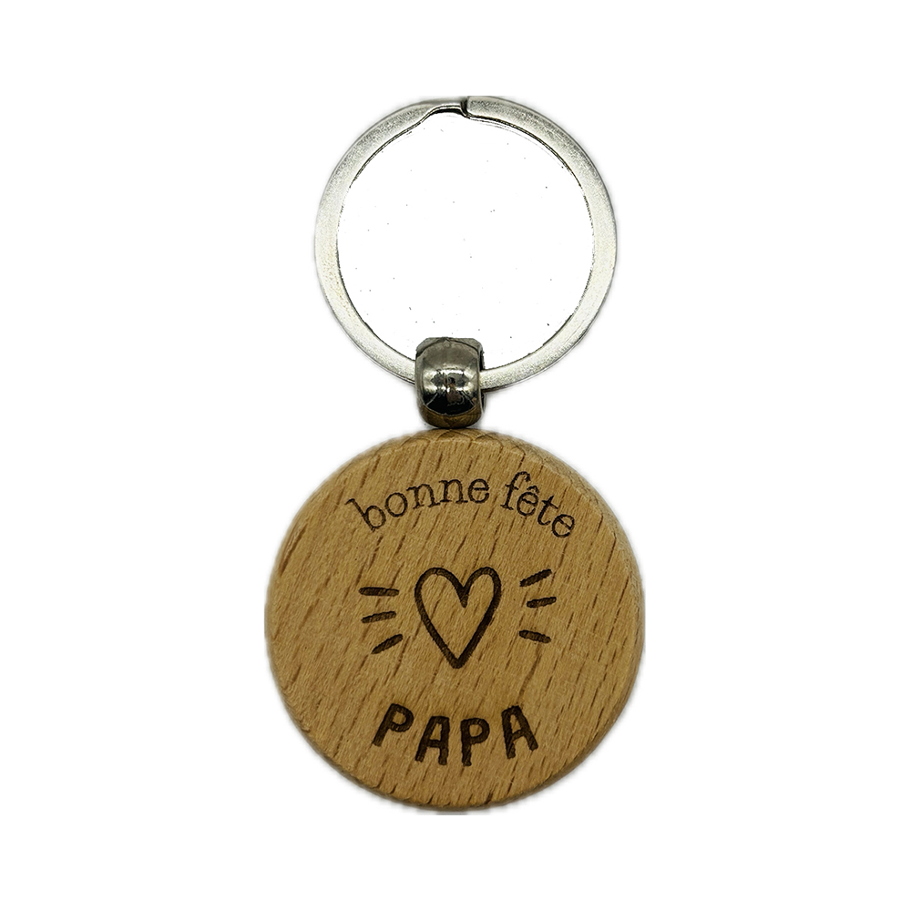 Fabriqué en bois massif, ce porte-clés allie chaleur et robustesse. Sa gravure fine et durable garantit une belle finition qui résistera au temps. Son anneau métallique solide permet de l’accrocher facilement à des clés, un sac ou un porte-monnaie.