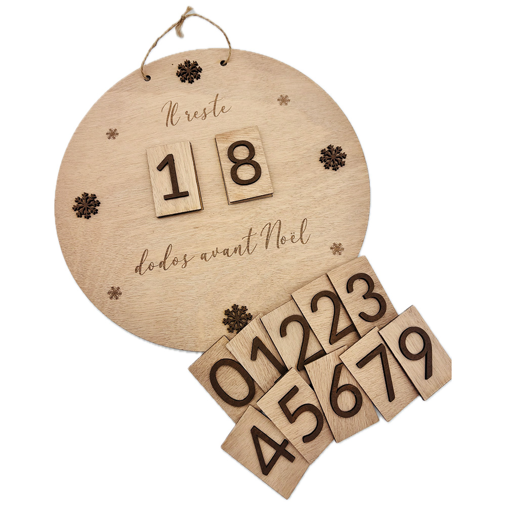 Faites patienter petits et grands avec notre décompte en bois de 25 cm de diamètre, idéal pour afficher le nombre de jours restants avant Noël !