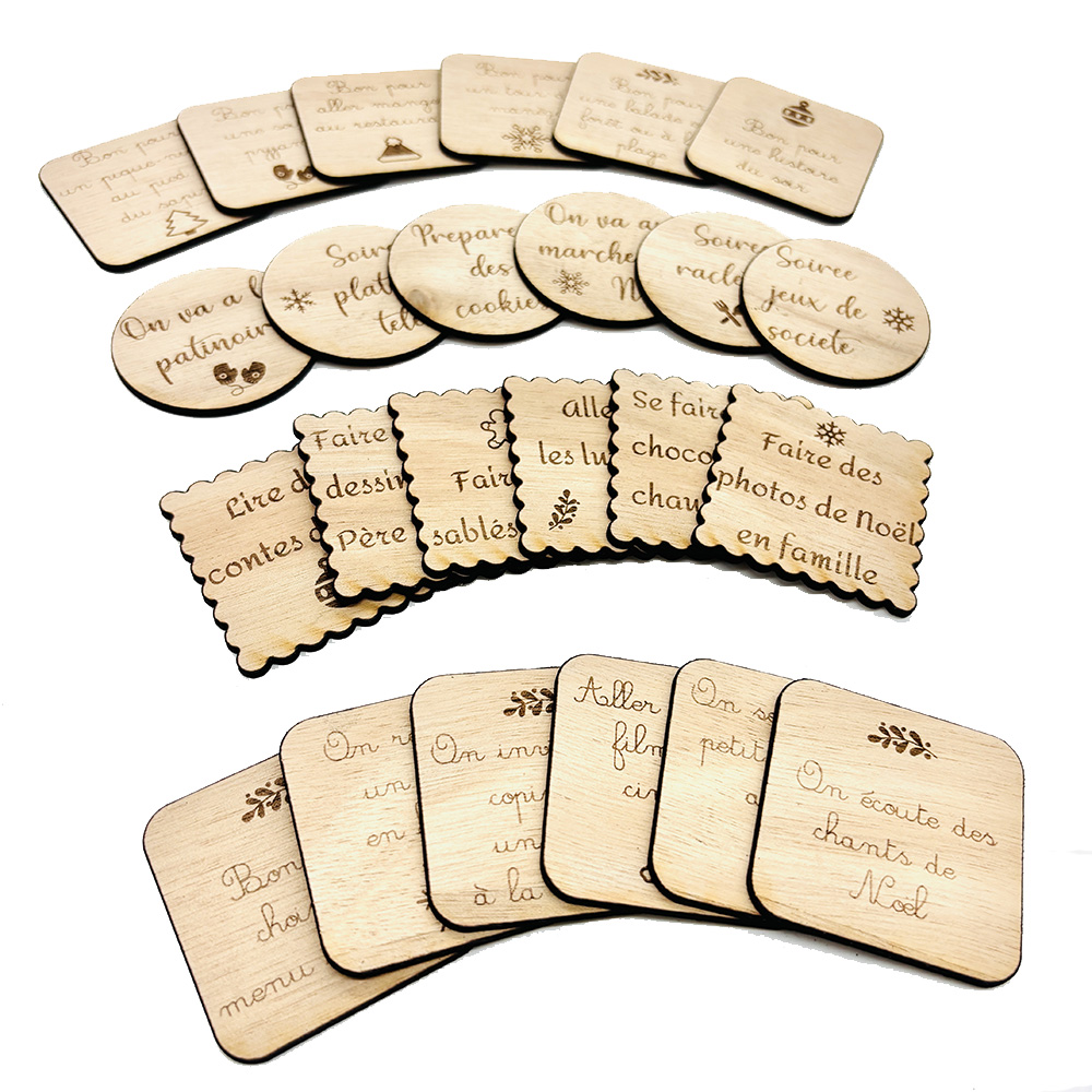 Apportez une touche d'originalité et de magie à votre calendrier de l'Avent avec ces jolis jetons en bois personnalisables. Une idée parfaite pour transformer l'attente de Noël en moments uniques et mémorables !