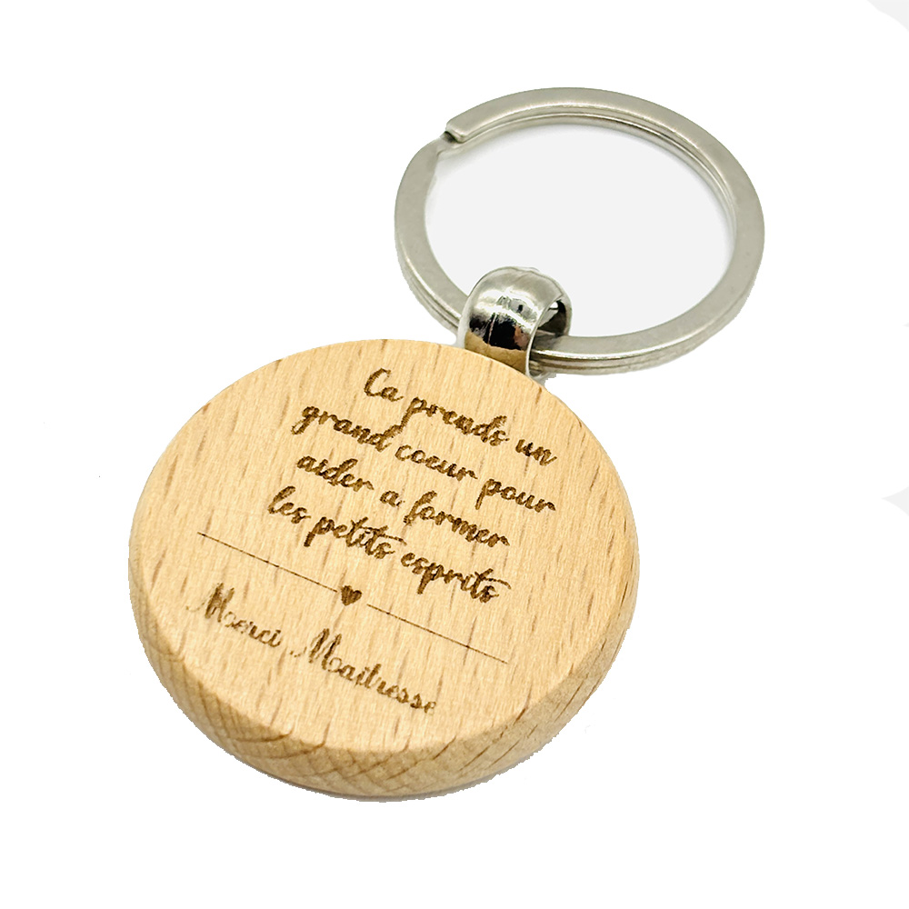 Exprimez toute votre gratitude envers une maîtresse ou une ATSEM avec ce porte-clé en bois unique, porteur d'un message empreint de douceur et de reconnaissance.