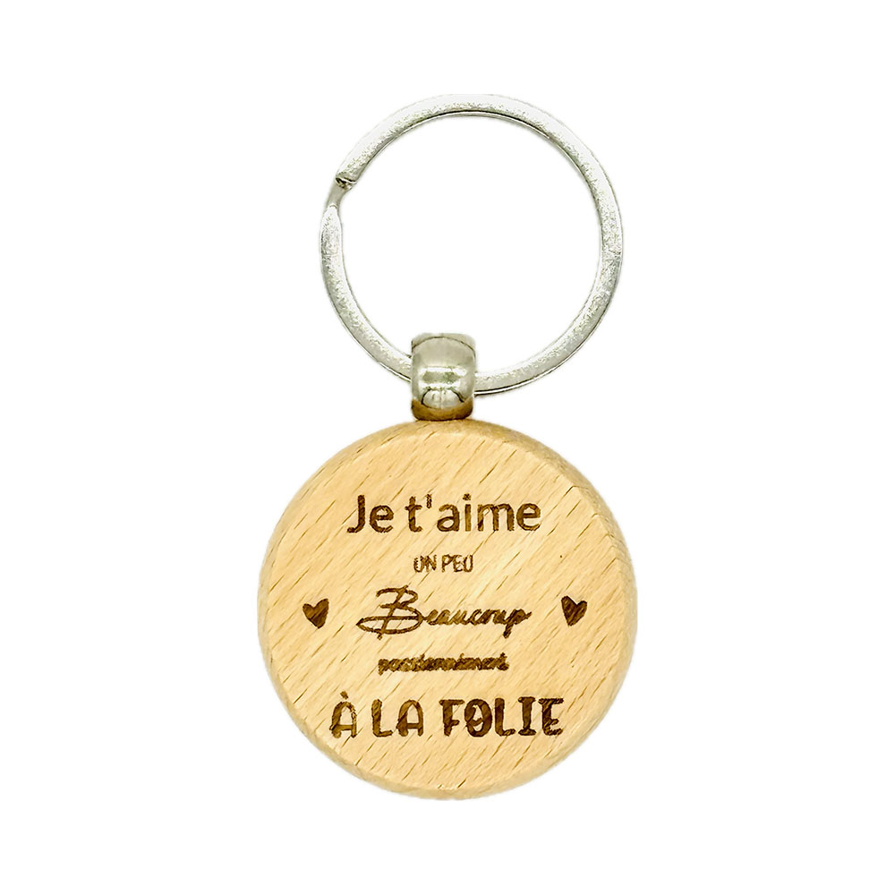 Offrez un symbole d’amour intemporel avec ce porte-clé en bois naturel, délicatement gravé des mots qui font battre les cœurs. Parfait pour déclarer ou redire votre amour de manière originale et élégante.