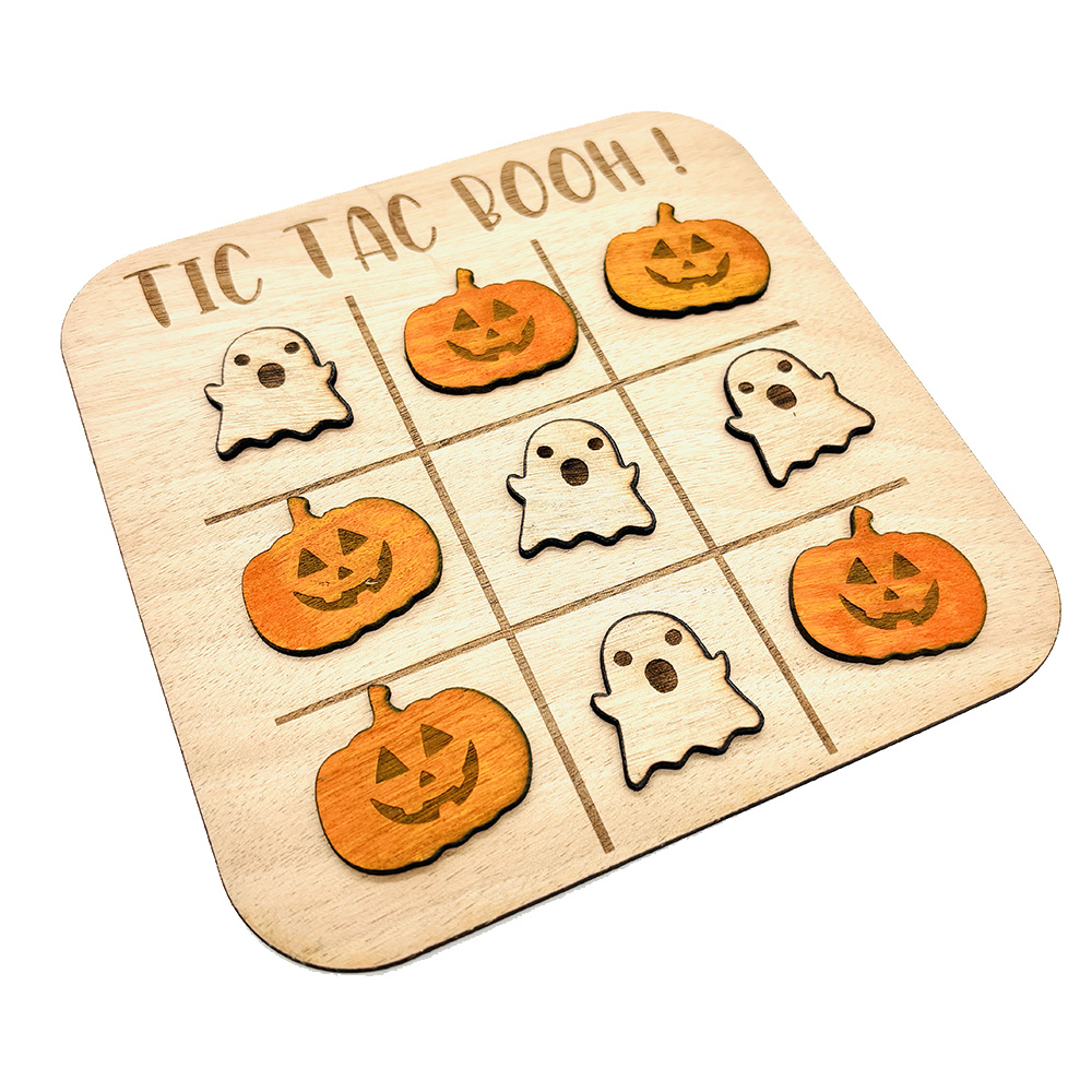 Ajoutez une touche ludique et festive à vos soirées d’Halloween avec notre jeu de morpion en bois fait main, entièrement personnalisé sur le thème d’Halloween !