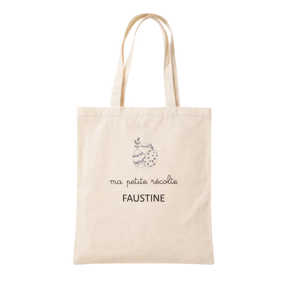 Avec son design doux et printanier représentant de jolis œufs décorés et l’inscription « ma petite récolte », ce tote bag devient un accessoire unique grâce à la personnalisation avec le prénom de l’enfant.