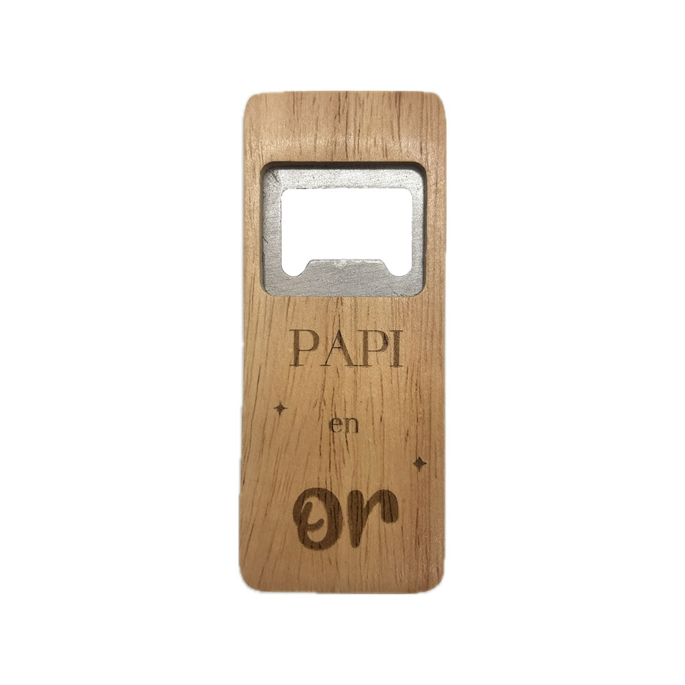 Parce que tous les papis méritent d’être célébrés, ce décapsuleur en bois gravé "Papi en or" est le cadeau parfait pour allier utilité et émotion.