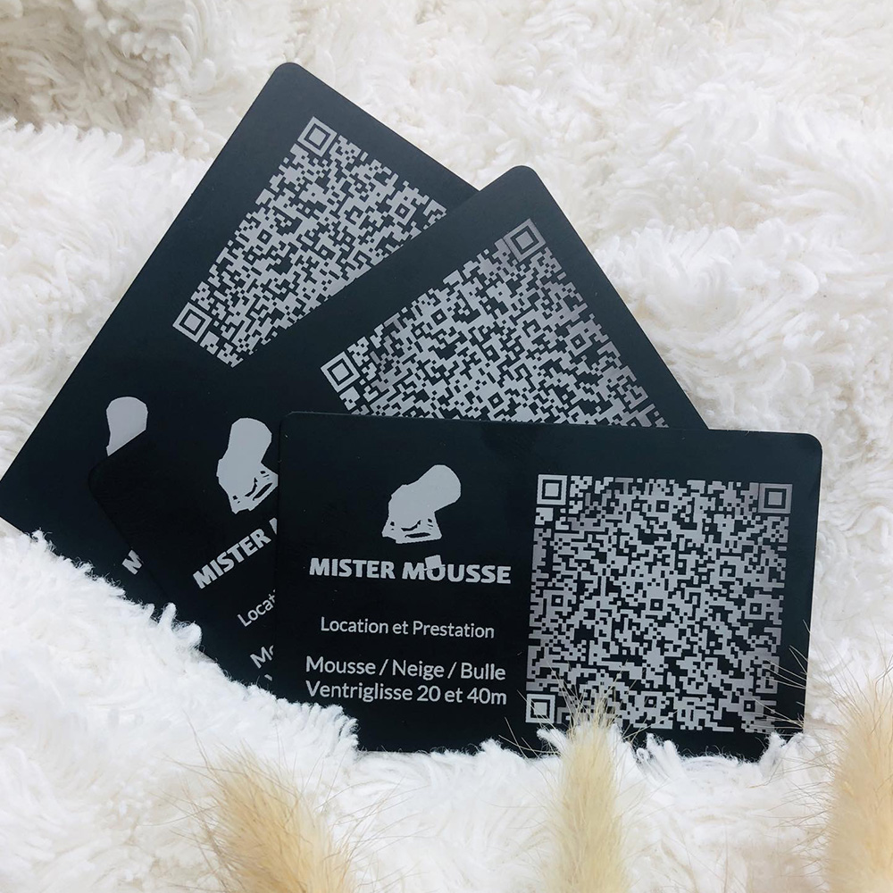 Démarquez-vous avec cette carte de visite moderne et élégante en aluminium. Personnalisable avec vos informations, logo, et un QR code, elle allie style et praticité, idéale pour laisser une impression durable auprès de vos contacts professionnels.
