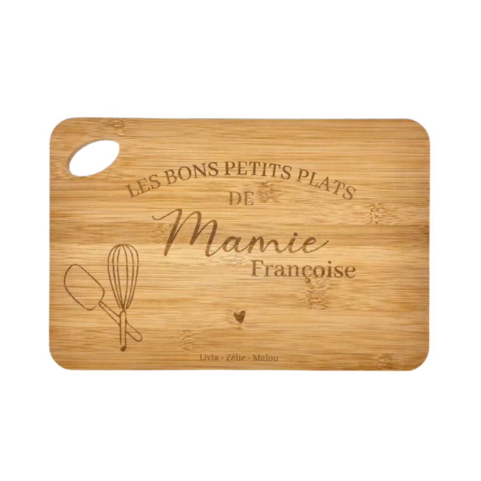 Offrez un cadeau authentique et rempli d’amour pour la Fête des Mamies avec cette planche à découper en bois personnalisée, pensée spécialement pour célébrer la reine des bons petits plats !