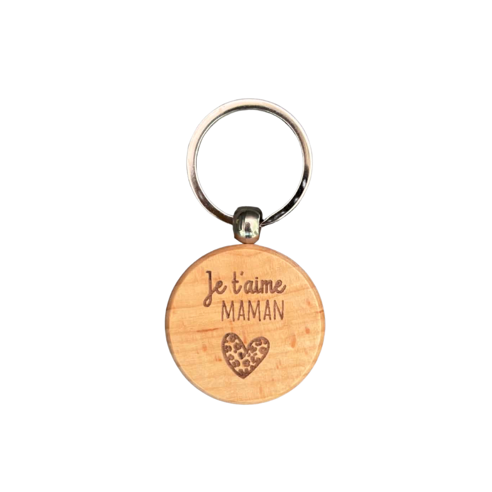Ce porte-clés en bois naturel est délicatement gravé du message “Je t’aime Maman”, accompagné d’un joli cœur. Une attention tendre et symbolique qui fera plaisir à coup sûr.